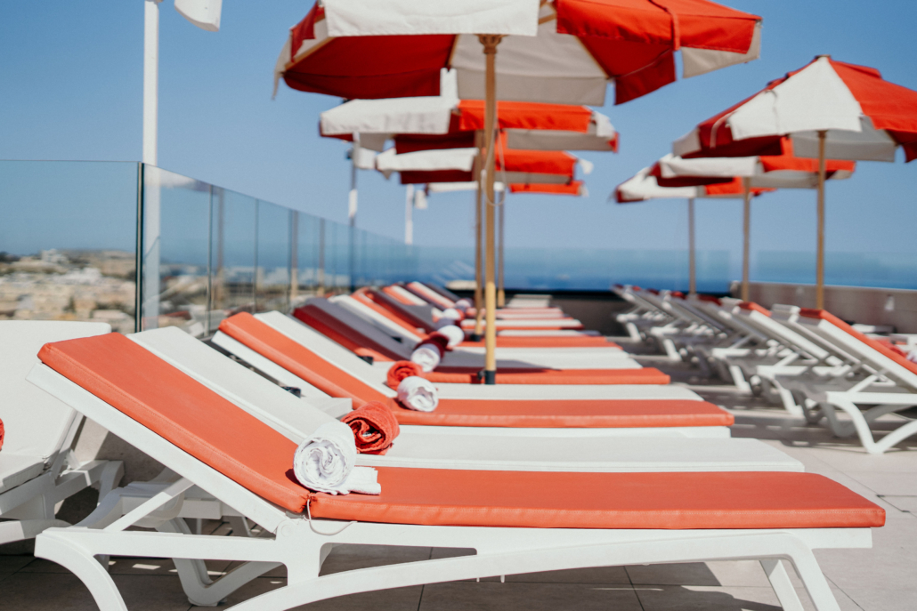 Take a dip in the pool and relax in the sun on our rooftop deck, open from May to September, weather permitting